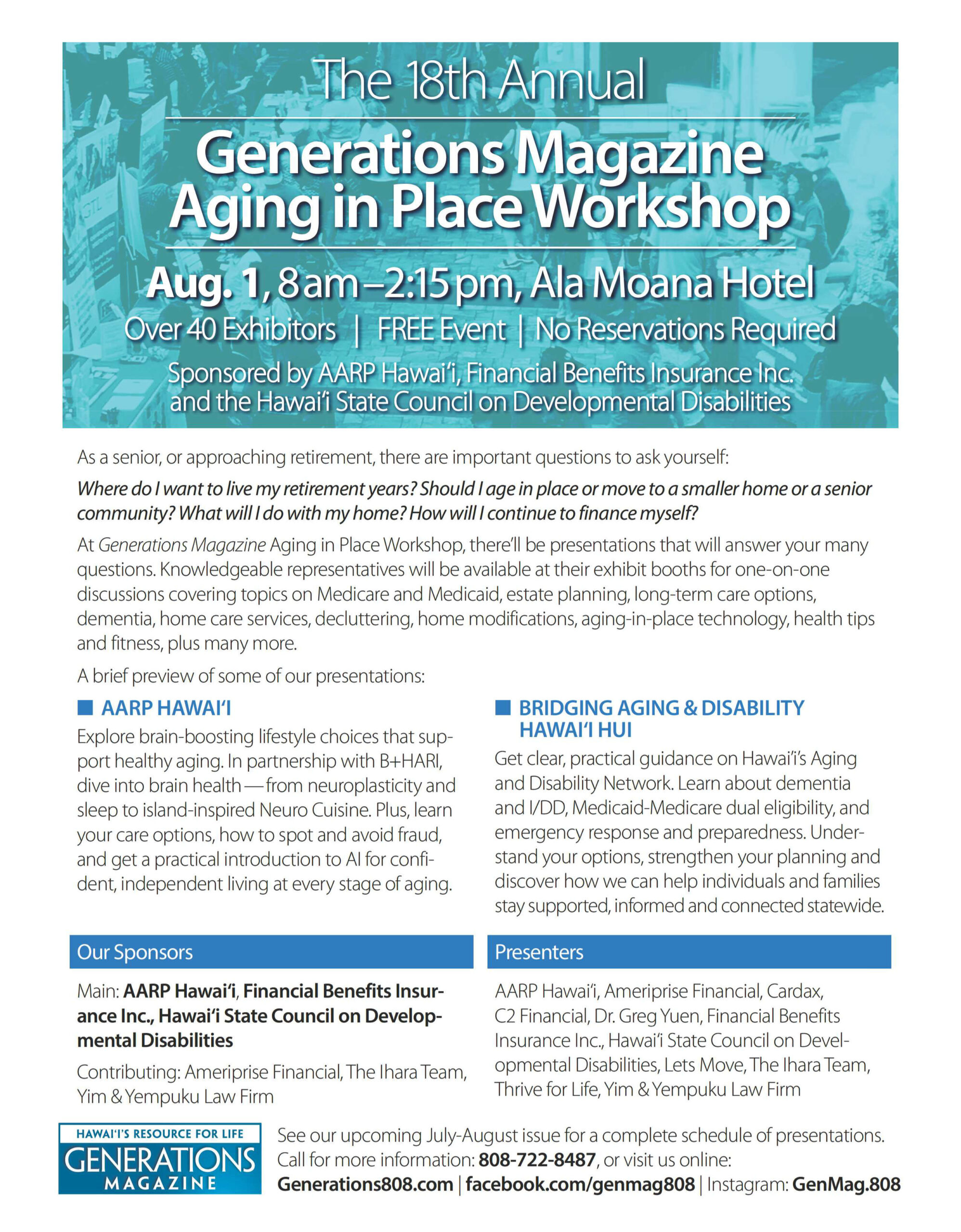 AARP Hawaiʻi is the state office of the nation’s largest nonprofit, nonpartisan organization dedicated to empowering people 50 and older to choose how they live as they age. AARP strengthens communities and advocates for what matters most to the 125 million Americans 50-plus and their families: health and financial security, and personal fulfillment. Follow us on Facebook @aarphawaii and Instagram @aarp_hi.