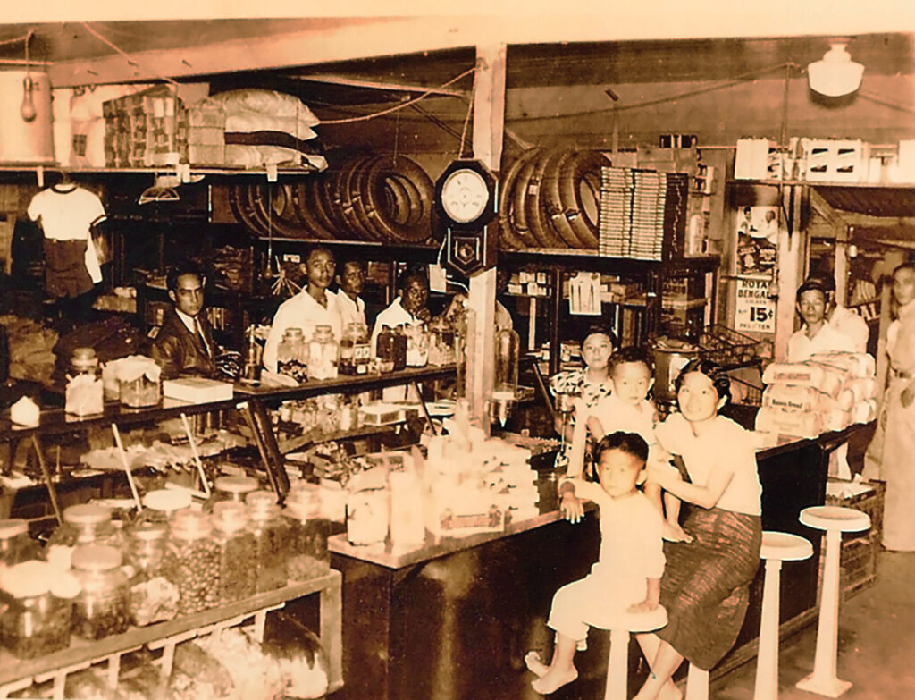and his mother, Shizuko. His brother, Ed, is seated on the counter, and a cashier stands behind him. The sugar plantation era in Hāna lasted from 1849 until 1947. All the district’s freight came via Hāna Bay wharf during that time, and bagged sugar left that way. The wharf and its facilities were destroyed by the 1946 tsunami. The last East Maui sugar mill ceased operations that same year. The road to Hāna wasn’t completely paved until 1962.