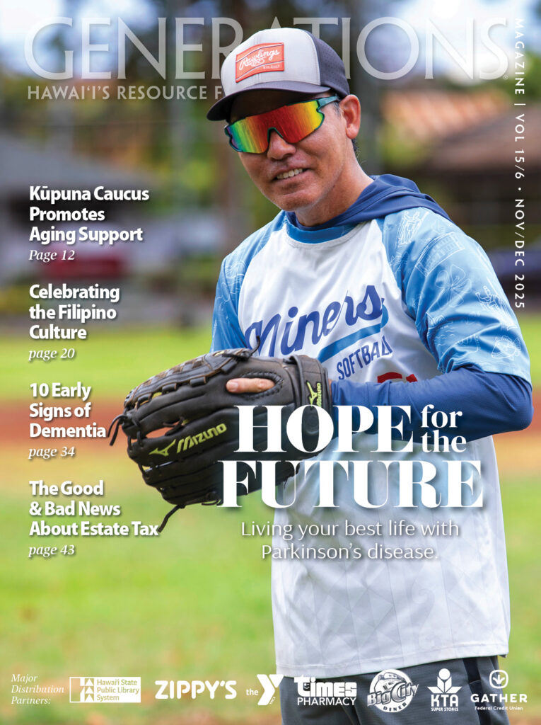 AH: Age is not indicative of energy or mental competency. Everyone should live life with a purpose. Now is the time when we can really make meaningful contributions within our community. As my friend and fellow senior Andy Rodrigues (owner of Andy’s Sandwiches and Smoothies in Manoa) says, “We can’t let our blessings ferment!” Even as we get older, we have to use our blessings to bless others. For me, that blessing is the gift of sharing vital knowledge to help our community.” As ku¯puna, it is our responsibility — our kuleana — to guide our young generation to see life is worth living and that there are many means