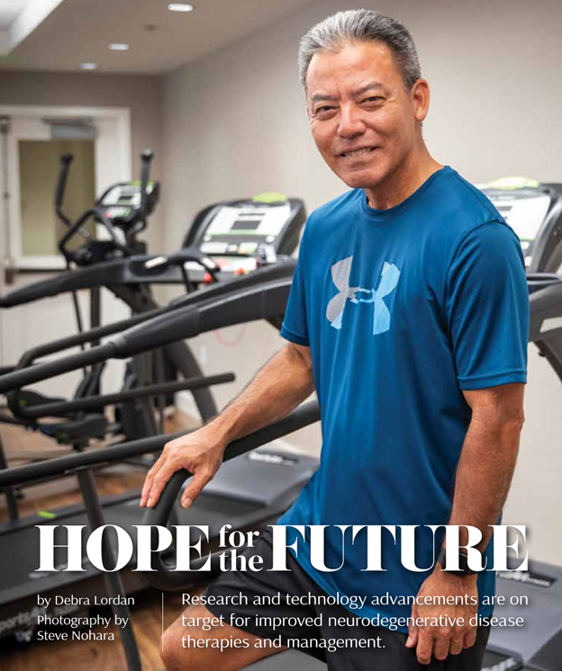 “My girlfriend and I would walk daily around Diamond Head after work and she noticed I stopped swinging my arms and that I shuffled my feet while walking,” says Glen. “My legs started to feel heavy. Soon after, I started experiencing shoulder and neck stiffness and a tremor in my left hand. But an official diagnosis wouldn’t come until more than two years later.”