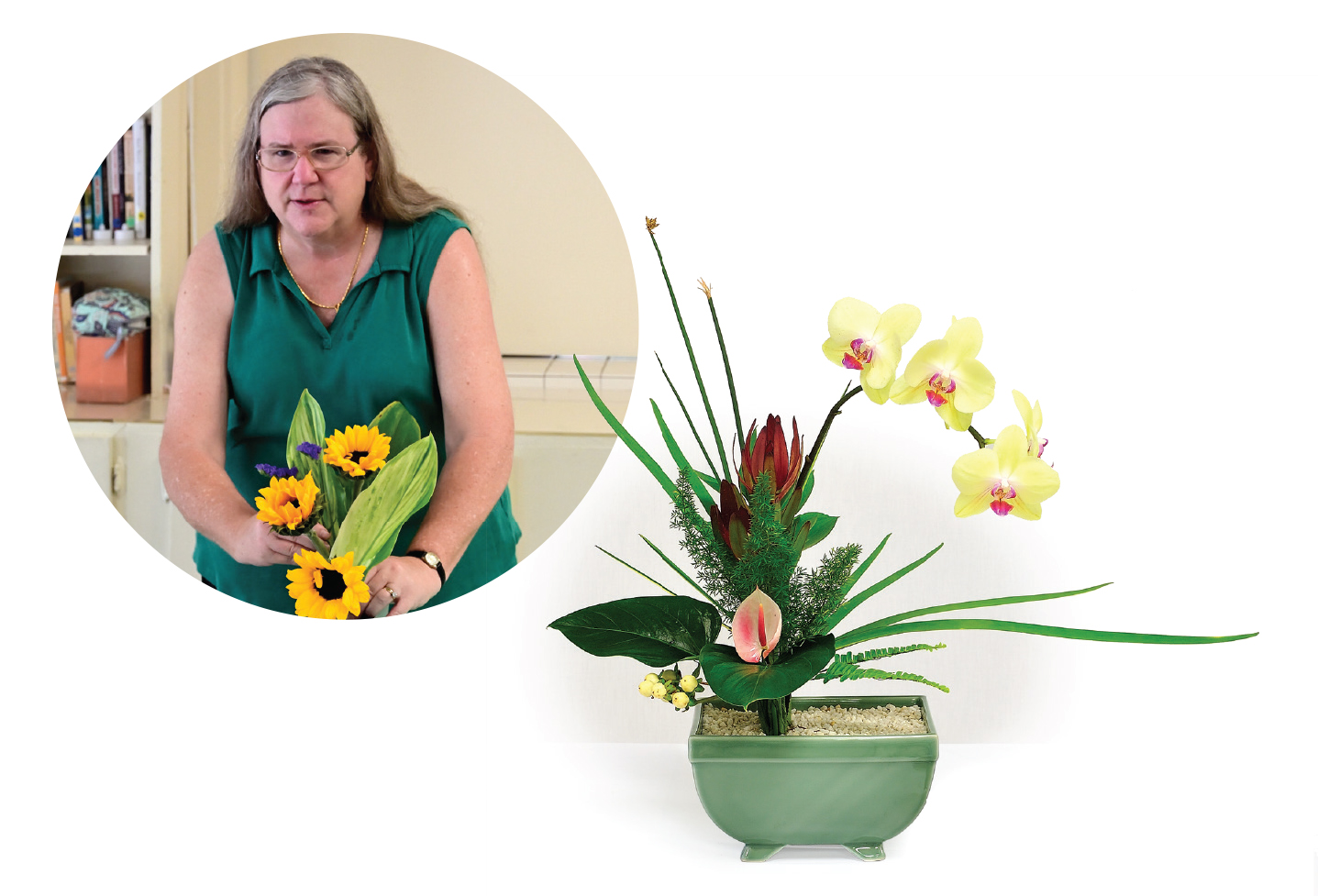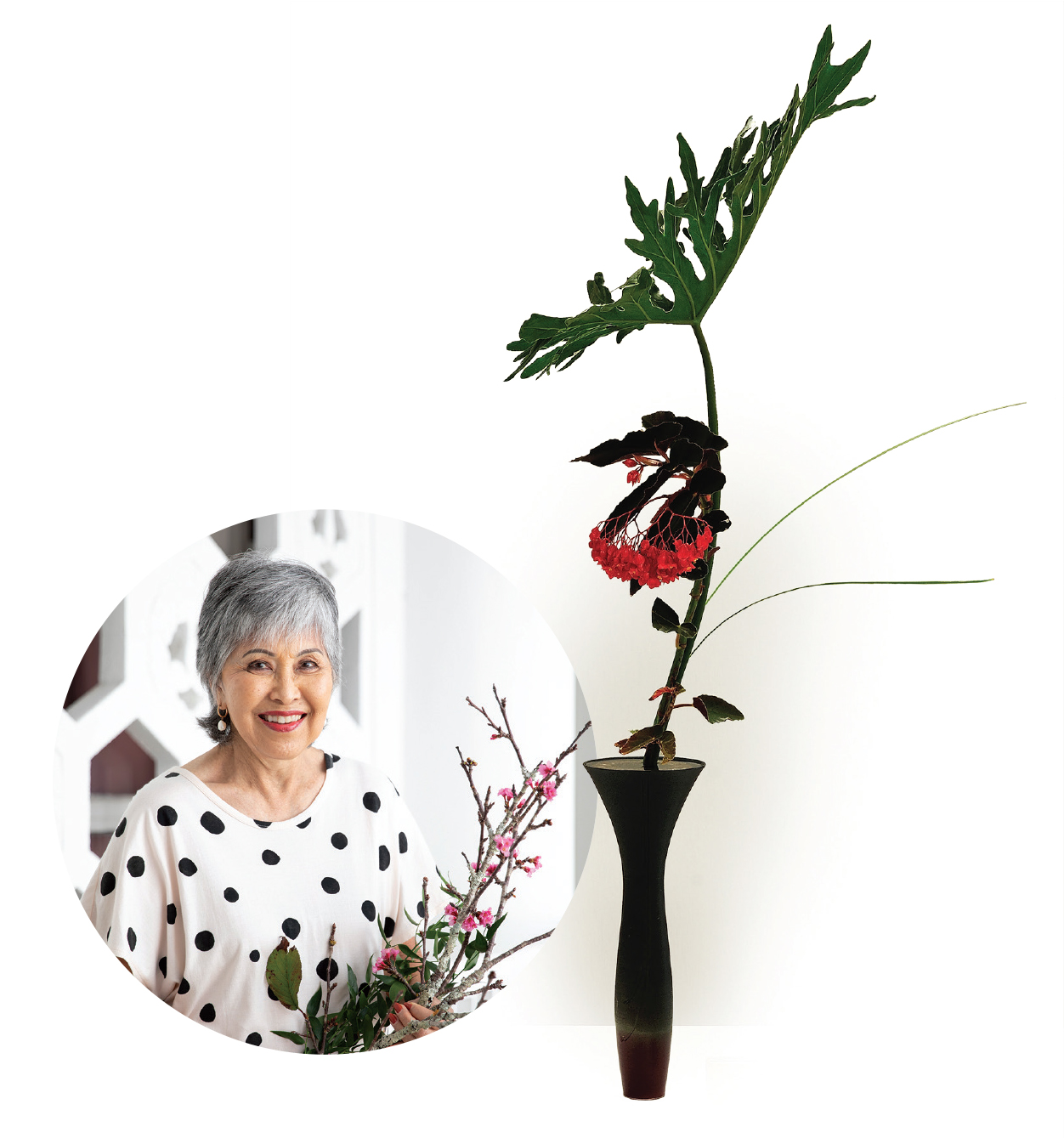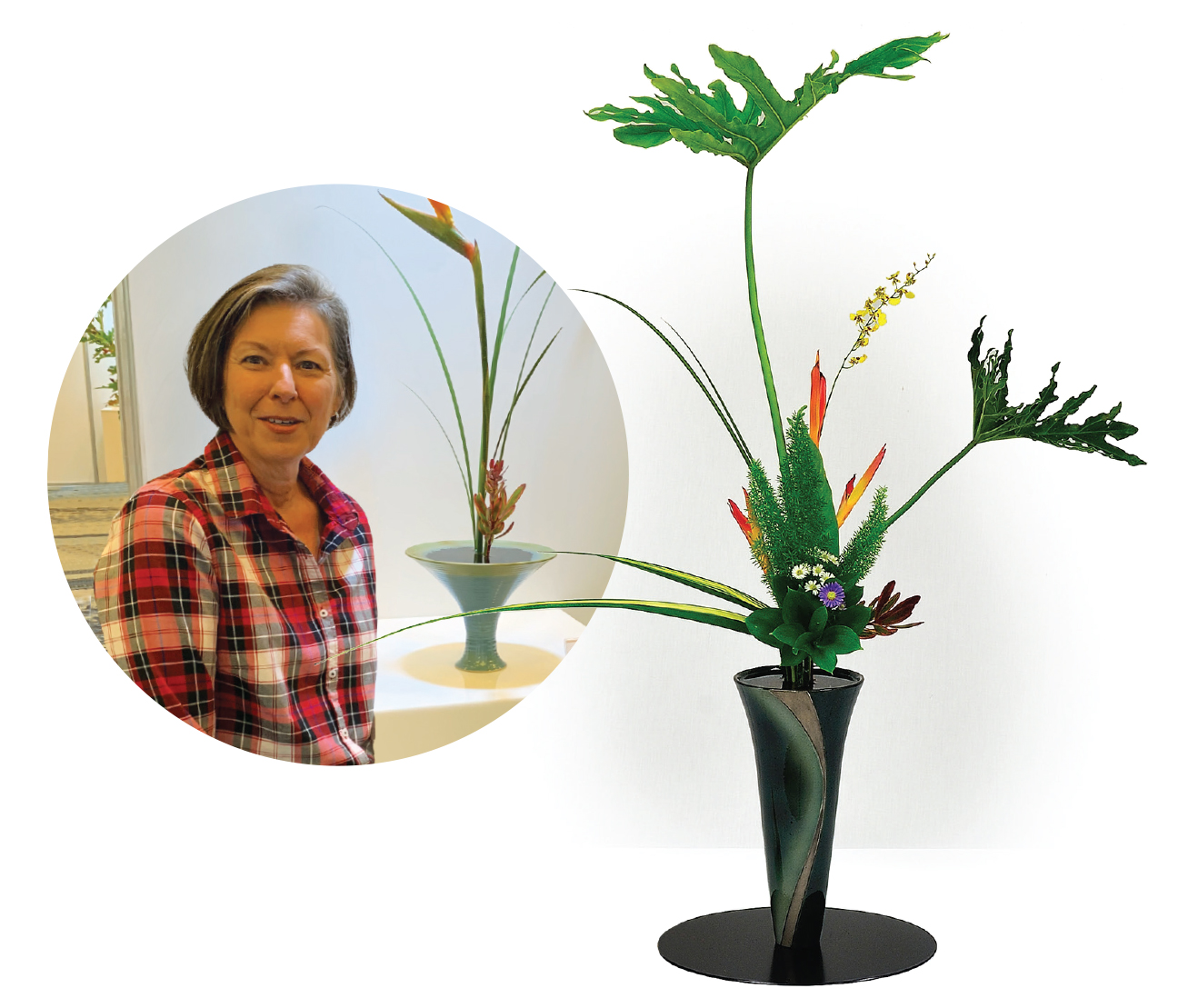 Diana’s journey with ikebana began when her husband was stationed in Japan. For 18 months, she studied with a sensei who came to the base, and who asked her to join Ikebana International (ikebana-hawaii.org). Back in Hawai‘i, she was introduced to Sensei Keiko Fukuda of Ikenobo School. Diana was president of Ikebana International Headquarters in Tokyo from 2017 to 2019.