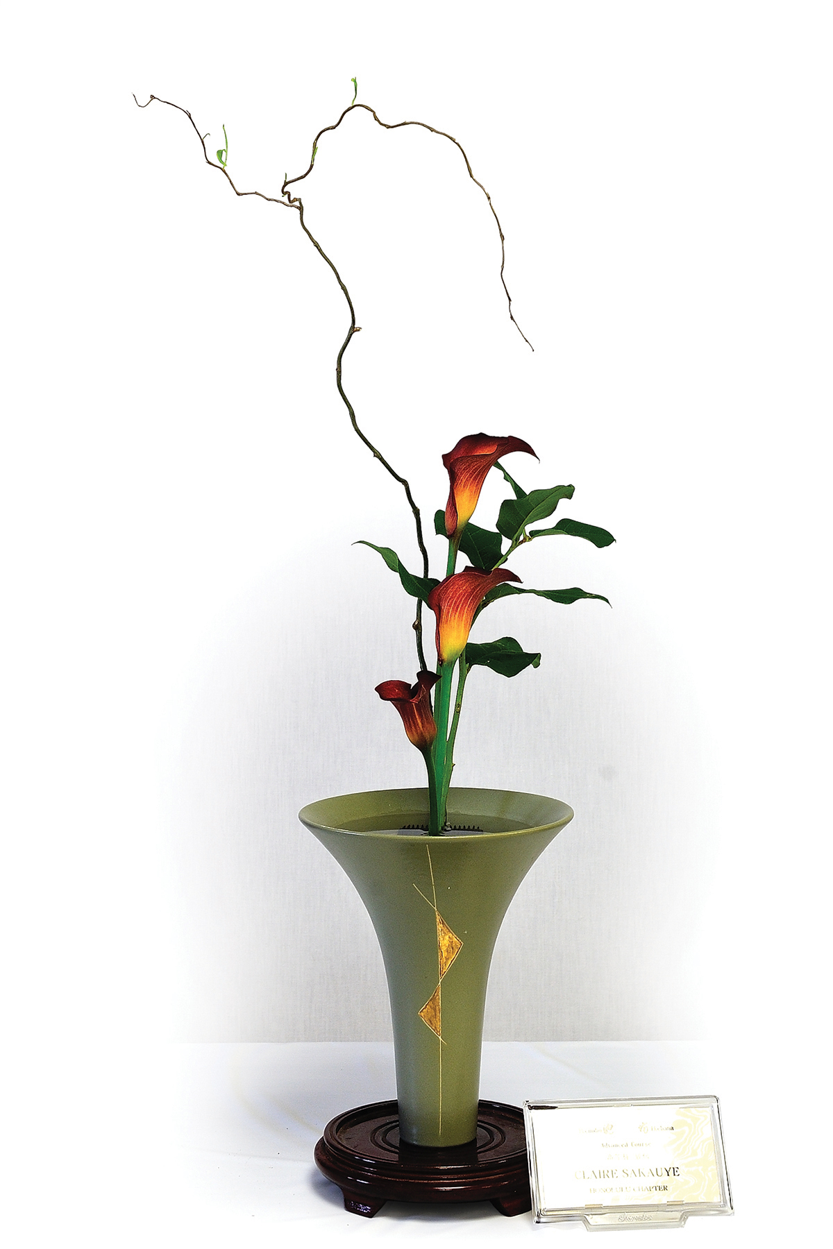 Ikenobo Ikebana is not competitive. It acknowledges progressive levels of achievement based on a set sequence of classes and workshops by awarding certificates. The number of lessons is not the only determining factor for certificates. Students also need to demonstrate an understanding of the knowledge and principles inherent to that level of achievement.