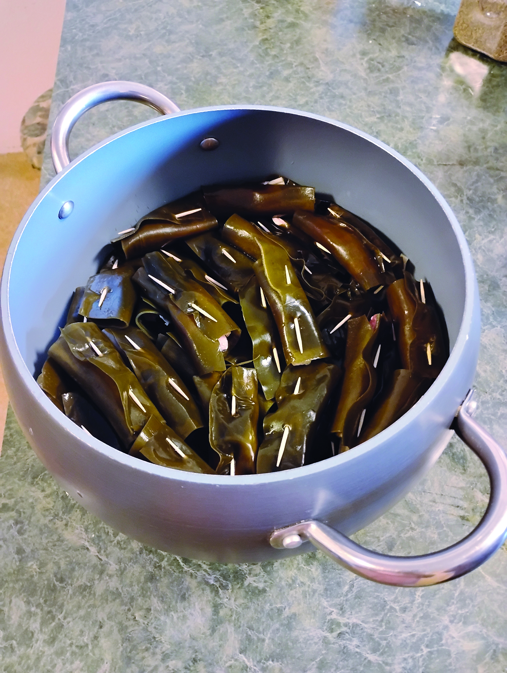 This kobumaki recipe has been passed down and enjoyed through many generations of my Okinawan family — from my great-grandma Nagamine to my grand-aunty, Joyce Shimabukuro, age 98, and now to her daughter, my Aunty Lisa. But my dad, Cliff Goya, with help from my sister, Cathlene, make it for our family. Making kobumaki is a labor of love; it takes time to prep and cook. But it is a family favorite and definitely one of the dishes that we will continue to pass down and enjoy with future generations.