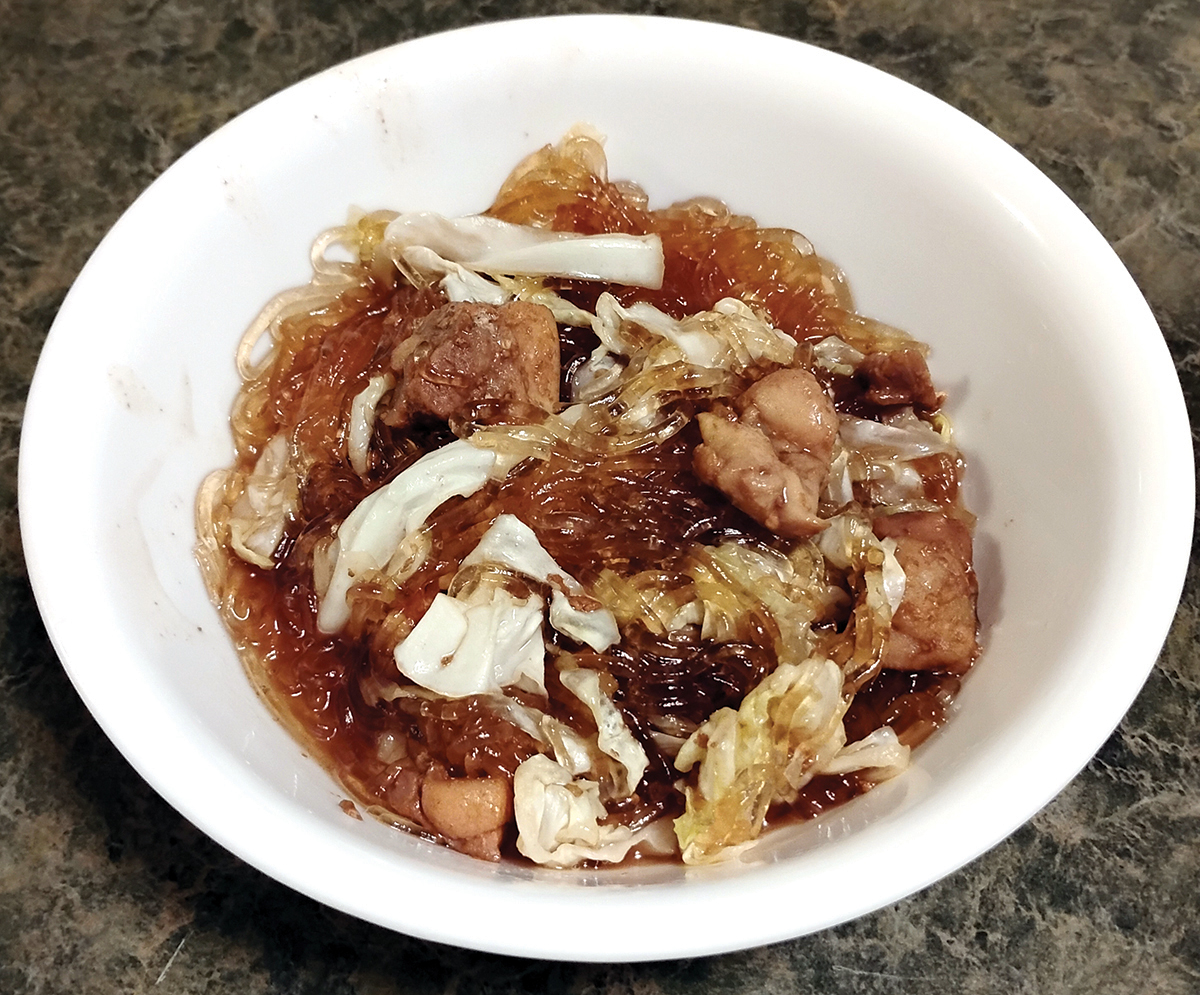 Prepare noodles by following the instructions on the package. After draining, cut the noodles into 3- to 4-inch pieces.